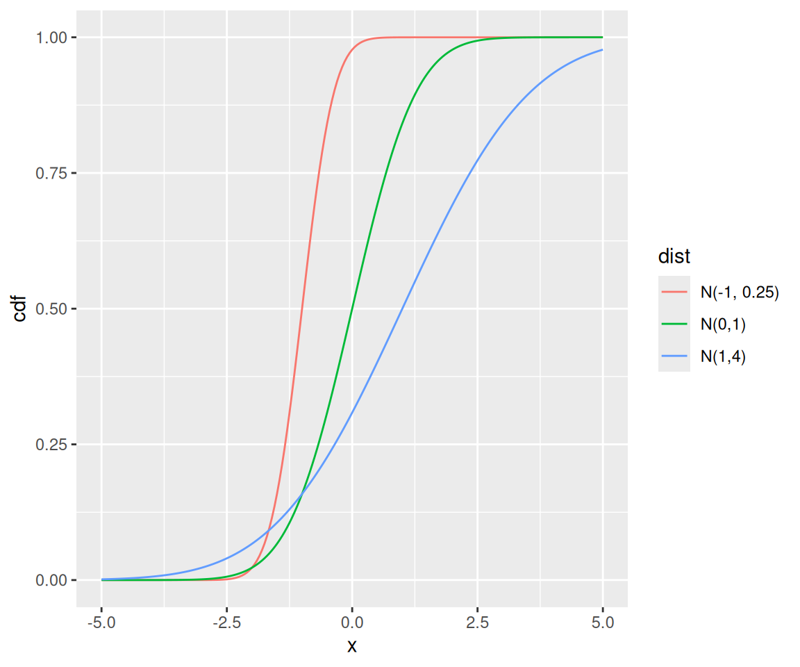 norm_dat_3 <- data.frame(dist = "N(-1, 0.25)", x = x, cdf = pnorm(x, mean = -1, sd = 0.5))