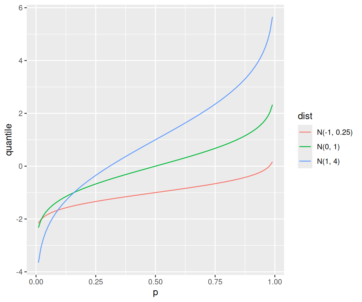 norm_dat_3 <- data.frame(dist = "N(-1, 0.25)", p = p, quantile = qnorm(p, -1, 0.5))